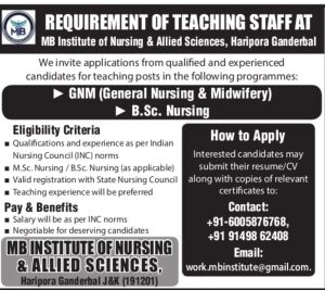 Recruitment in MB Institute of Nursing & Allied Sciences
