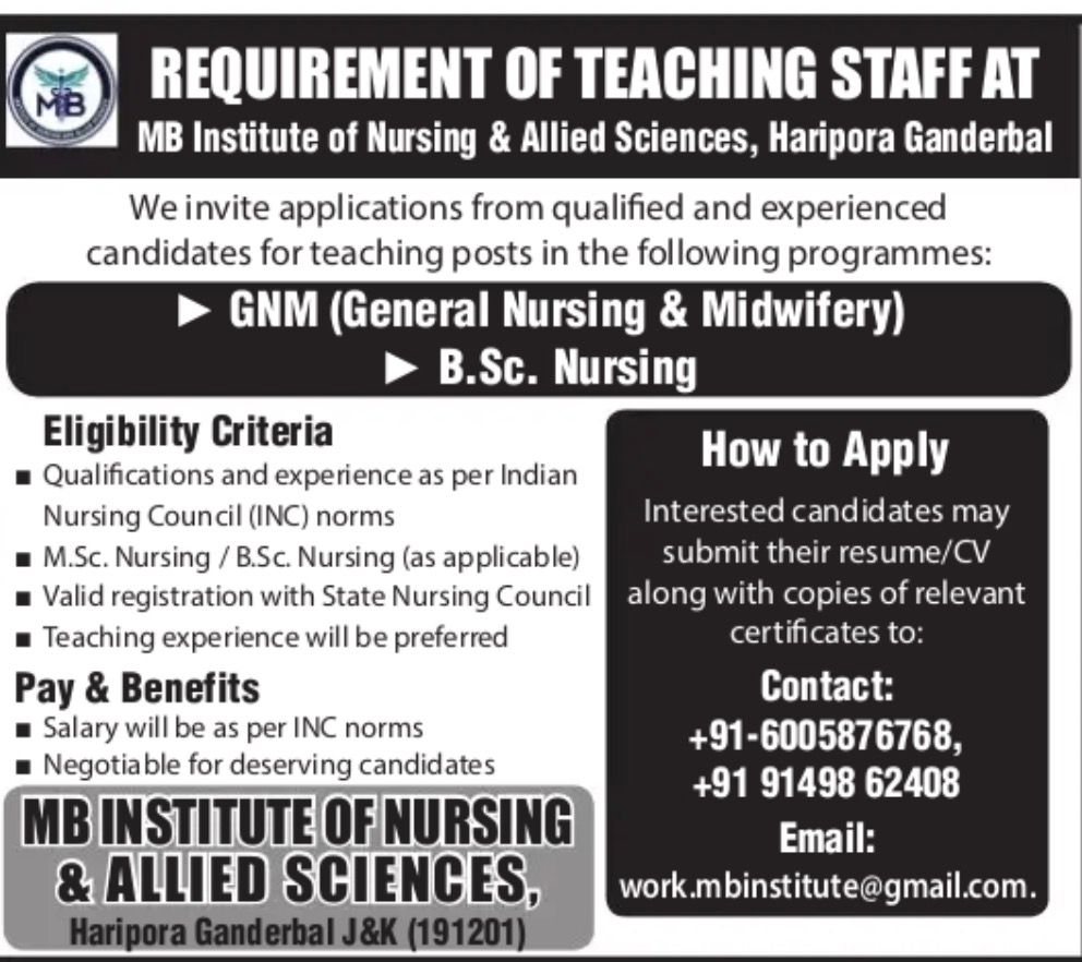 MB Institute of Nursing & Allied Sciences, Haripora Ganderbal