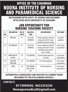 Recruitment in Noora Institute of Nursing & ParaMedical Science