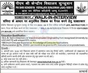 Recruitment in PM Shri Kendriya Vidyalaya Sunjuwan