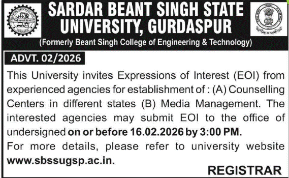The interested agencies may submit EOI to the office of the undersigned on or before 16.02.2026 by 3:00 PM.