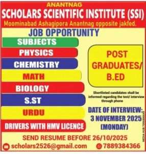 Recruitment in SCHOLARS SCIENTIFIC INSTITUTE (SSI)