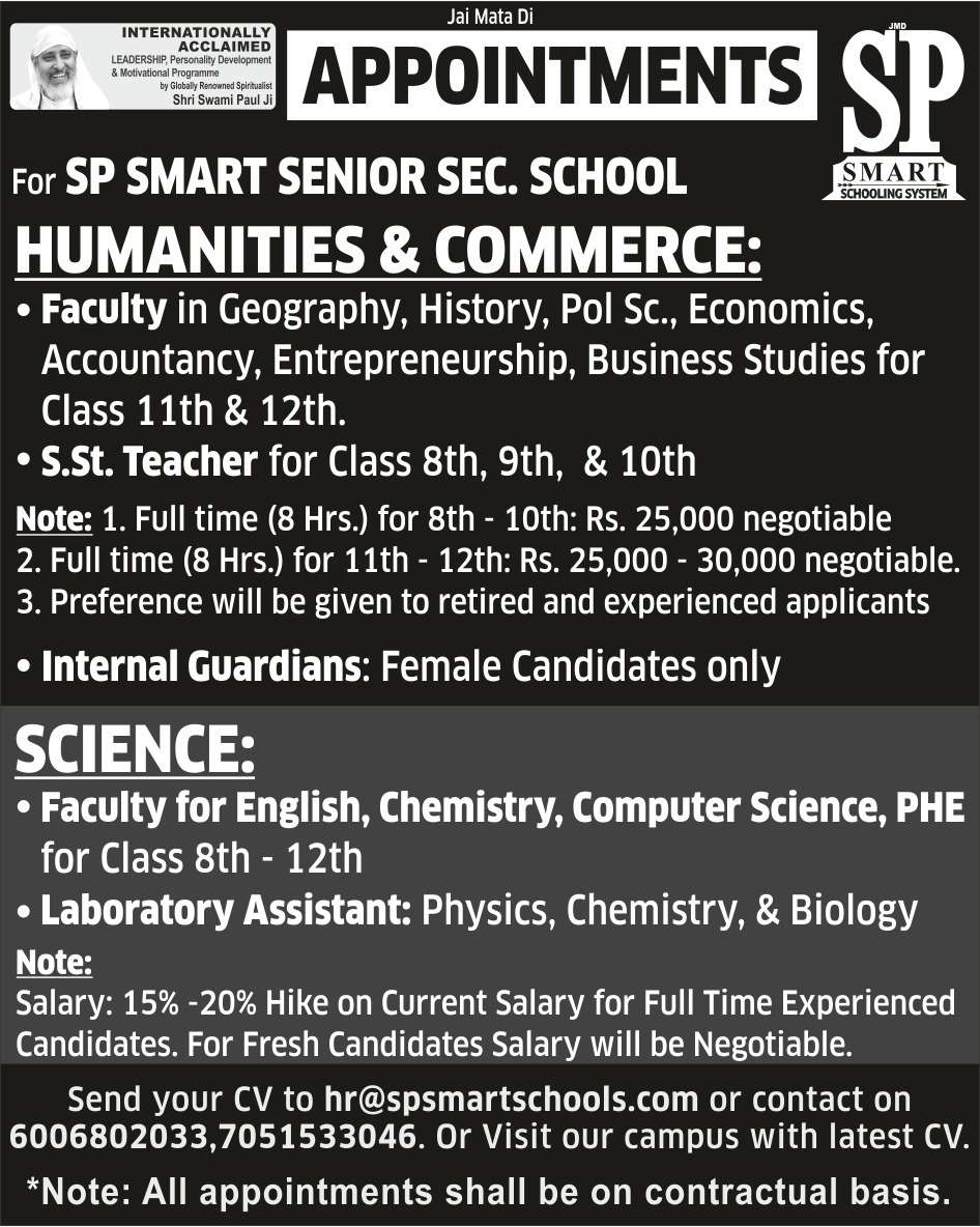 Recruitment in SP Smart Senior Sec. School Bari Brahmana
