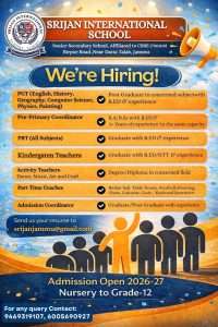 Recruitment in Srijan International School, Jammu