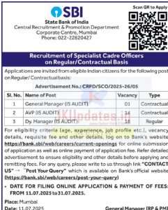 for online submission of application as well as online payment of application fee. Refer detailed advertisement to ensure eligibility and other details before applying and remitting fees. For any query, please write to us through link “CONTACT US” → “Post Your Query” which is available on Bank’s official website: