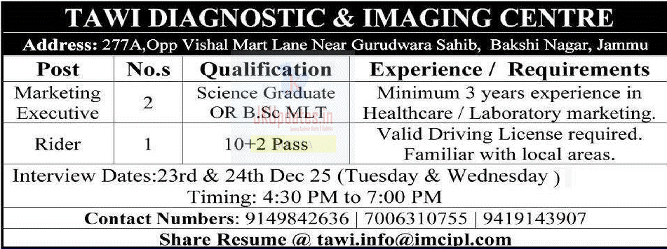 Interview Dates: 23rd & 24th December 2025 (Tuesday & Wednesday)