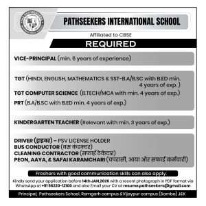 Disclaimer by JKUpdates : Readers are recommended to make all enquiries and seek appropriate advice before acting on any Job Posts published on our Platform . Any subscriber sending money, incurring any expenses or entering into any commitment in relation to any Job Post published on our Platform shall do so entirely at his/ her discretion, intelligence and risk.
