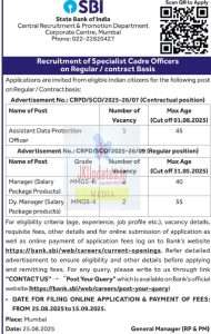 Refer detailed advertisement to ensure eligibility and other details before applying and remitting fees. For any query, please write to us through link โ€œCONTACT USโ€ โ†’ โ€œPost Your Queryโ€ which is available on Bankโ€™s official website (https://bank.sbi/web/careers/post-your-query).