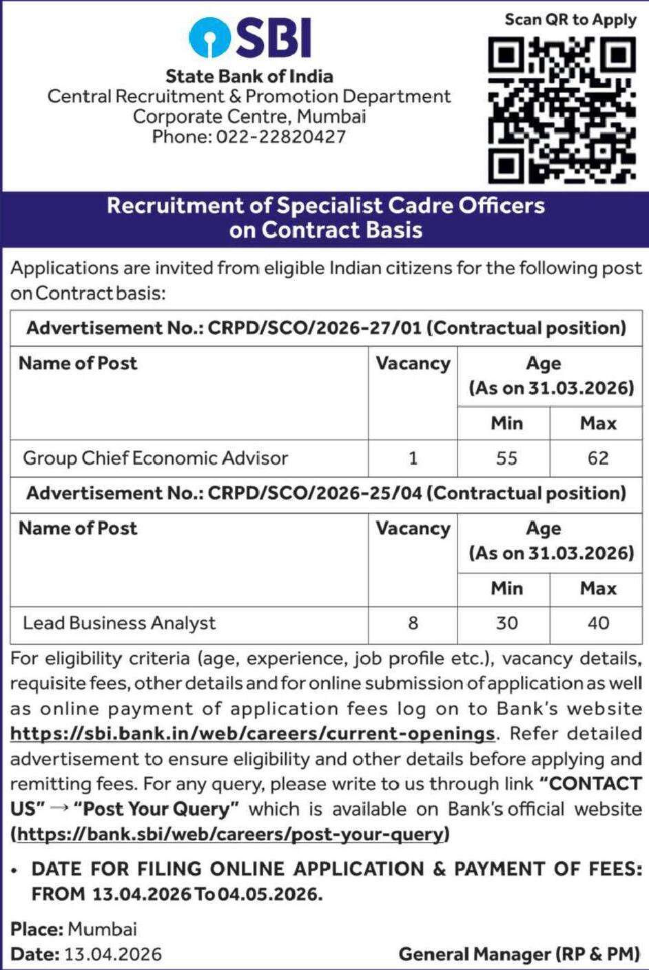 For any query, please write to us through link “CONTACT US” → “Post Your Query” available on Bank’s official website : https://bank.sbi/web/careers/post-your-query