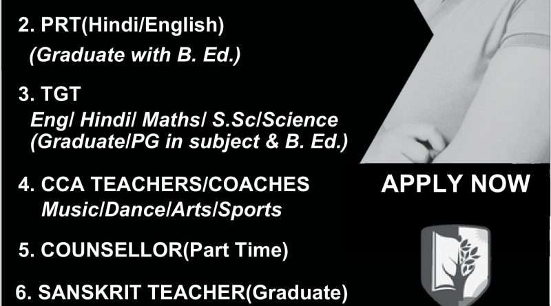 TGT (English / Hindi / Maths / Social Science / Science) – Graduate/Post Graduate in concerned subject with B.Ed.