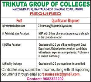 TRIKUTA GROUP OF COLLEGES RECRUITMENT FOR VARIOUS POSTS