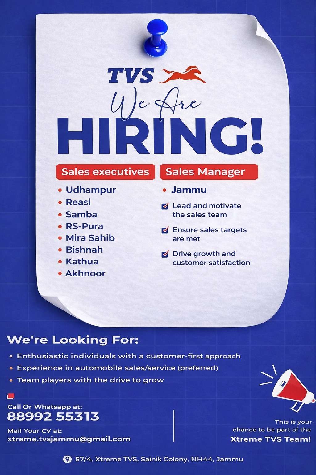 57/4, Xtreme TVS, Sainik Colony, NH-44, Jammu