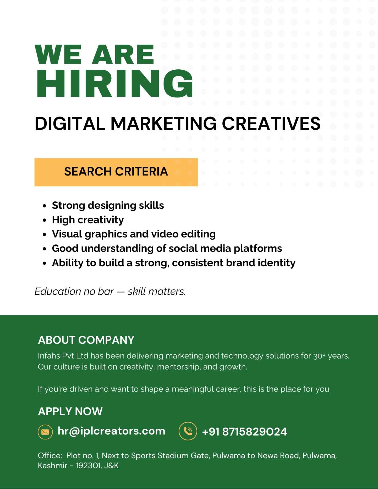 Disclaimer by JKUpdates : Readers are recommended to make all enquiries and seek appropriate advice before acting on any Job Posts published on our Platform . Any subscriber sending money, incurring any expenses or entering into any commitment in relation to any Job Post published on our Platform shall do so entirely at his/ her discretion, intelligence and risk.
