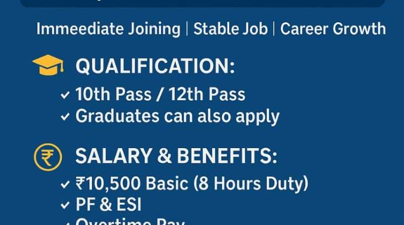 Salary: ₹10,500 basic, 8 hours duty