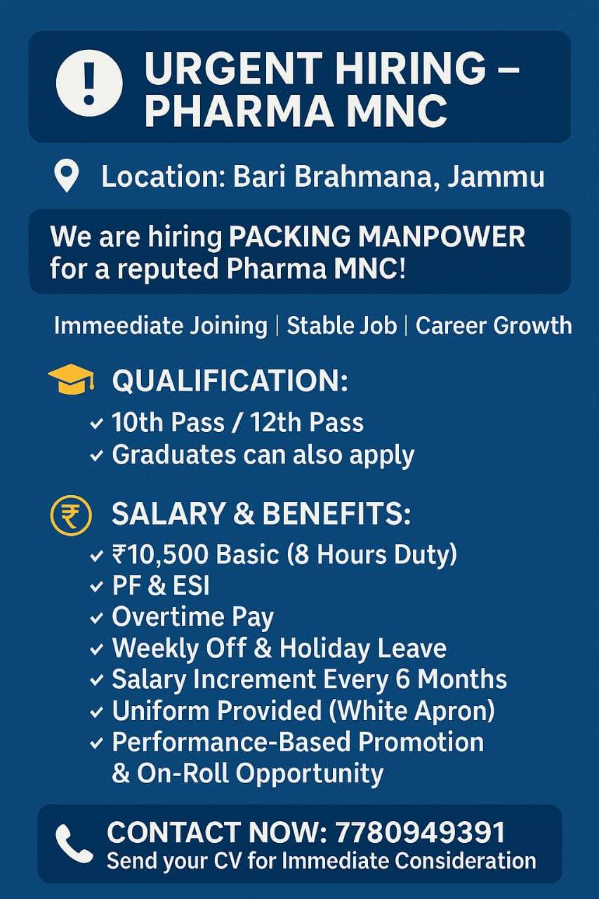 Disclaimer by JKUpdates : Readers are recommended to make all enquiries and seek appropriate advice before acting on any Job Posts published on our Platform . Any subscriber sending money, incurring any expenses or entering into any commitment in relation to any Job Post published on our Platform shall do so entirely at his/ her discretion, intelligence and risk.