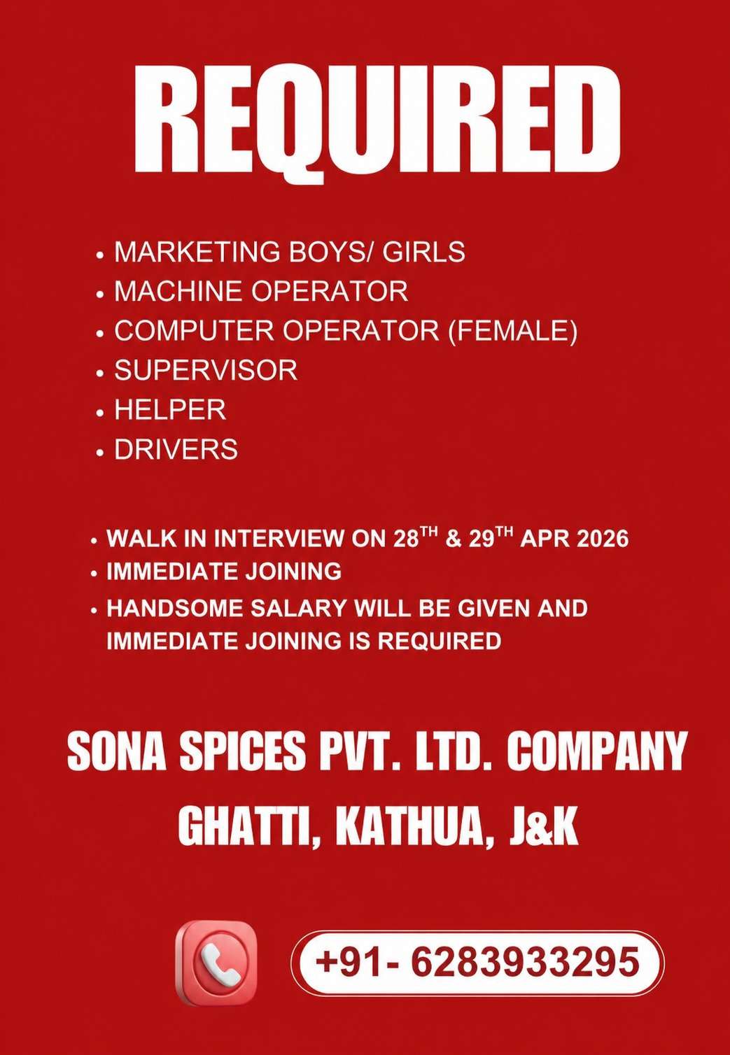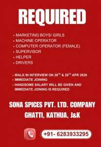 Disclaimer by JKUpdates : Readers are recommended to make all enquiries and seek appropriate advice before acting on any Job Posts published on our Platform . Any subscriber sending money, incurring any expenses or entering into any commitment in relation to any Job Post published on our Platform shall do so entirely at his/ her discretion, intelligence and risk.