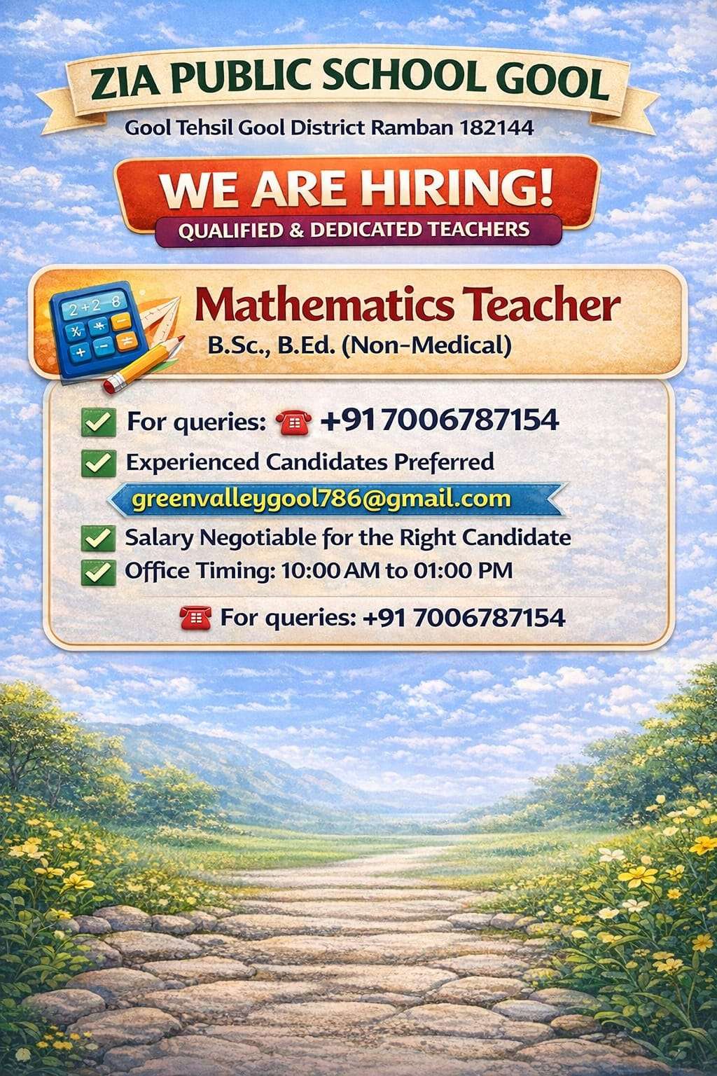 ZIA PUBLIC SCHOOL GOOL Recruitment