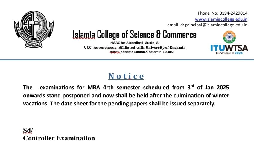 Jan 2, 2025 GAD Order, Govt Order Next Exam College – ICSC REVISED DATESHEET & EXAMINATION of MBA Dated: 2-1-25 For REVISED DATESHEET & EXAMINATION of MBA click link below: THE EXAMINATION FOR MBA 4TH SEM SCHEDULED FROM 3RD JANUARY, 2025 ONWARDS STAND POSTPONEDย (19 hours ago) ย ย REVISED DATESHEET FOR MBA 4TH SEMESTER BATCH 2022 (REGULAR) AND M.COM / MA ENGLISH M.SC BOTANY / CHEMISTRY / ZOOLOGY BATCH 2020-2021 BACKLOG NotificationsDate Sheet