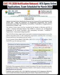 CUET PG 2026 Notification Released: NTA Opens Online Applications, Exam Scheduled for March 2026