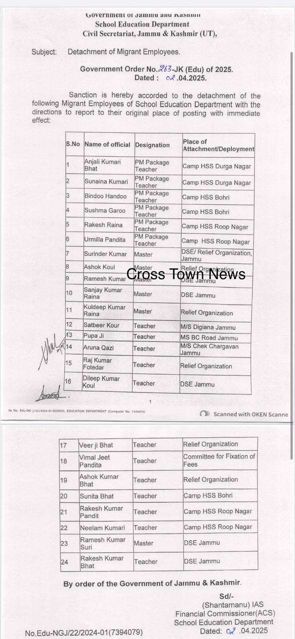 Detachment of 24 Migrant Employees in Jammu and Kashmir
