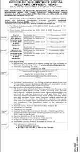 District Social Welfare Reasi Pre & Post Matric Scholarship Notice