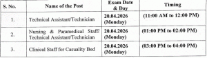 It is notified for information of all the eligible candidates who are intending to apply or have applied for various posts in GMC Anantnag advertised vide Advertisement Notice No. 05 GMCA of 2026, dated: 09-03-2026, that the date for written examination (OMR Based Objective Type) is fixed as per the schedule given below: