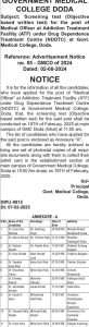 Screening test (Objective based written test) for the post of Medical Officer at Addiction Treatment Facility (ATF) under Drug Dependence Treatment Centre (NDDTC) at Govt. Medical College, Doda.