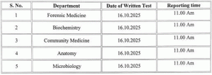 It is hereby notified for the information of all concerned that the Written Test for the post of Demonstrator in the following departments of Government Medical College, Kathua shall be conducted as per the schedule given below. The list of candidates is attached as annexure A: