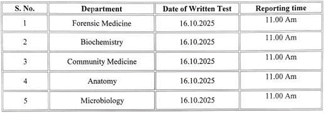 It is hereby notified for the information of all concerned that the Written Test for the post of Demonstrator in the following departments of Government Medical College, Kathua shall be conducted as per the schedule given below. The list of candidates is attached as annexure A: