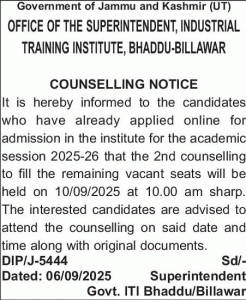 Office of the Superintendent, Industrial Training Institute, Bhaddu-Billawar