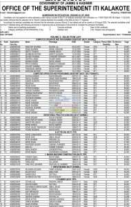 Candidates who had applied for online admission under various courses of this ITI at Kalakote advertised vide notification no:- ITI/KKT/2025/185-190 Dated:- 13.05.2025 are hereby informed that the selection list of Round 2 stands declared and available in the office at Govt. ITI Kalakote.