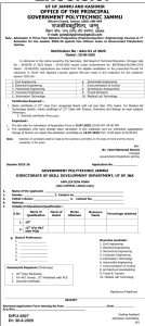 Admission in Three Year Diploma Programme (Engineering/Non-Engineering) Courses in 1st Semester for the session 2025-26 against few leftover seats at Government Polytechnic Jammu.