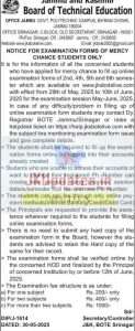 J&K, BOTE Srinagar Notice For Examination Form Of Mercy Chance Students Only