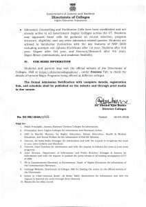 To assist applicants, Admission Counselling Cells have been established in all Government Degree Colleges. These centres will provide guidance on: