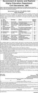 J&K Govt Higher Education Department Appointments