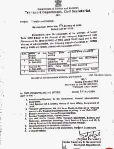 Consequent upon the placement of the services of Junior Scale JKAS Officers at the disposal of the Transport Department vide Government Order No. 1503-JK(GAD) of 2025 dated 20-11-2025 and in the interest of administration, the following transfers/postings of ARTOs and I/C ARTO are hereby ordered with immediate effect:
