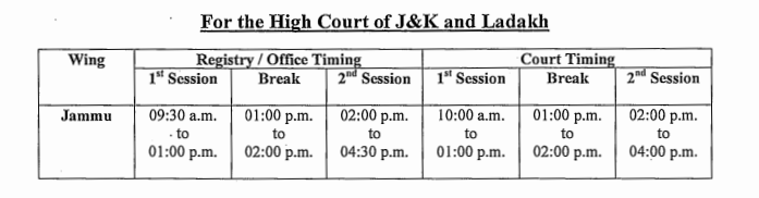 It is hereby notified for the information of all concerned that w.e.f. 30.06.2025, the Jammu Wing of the High Court of J&K and Ladakh