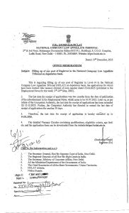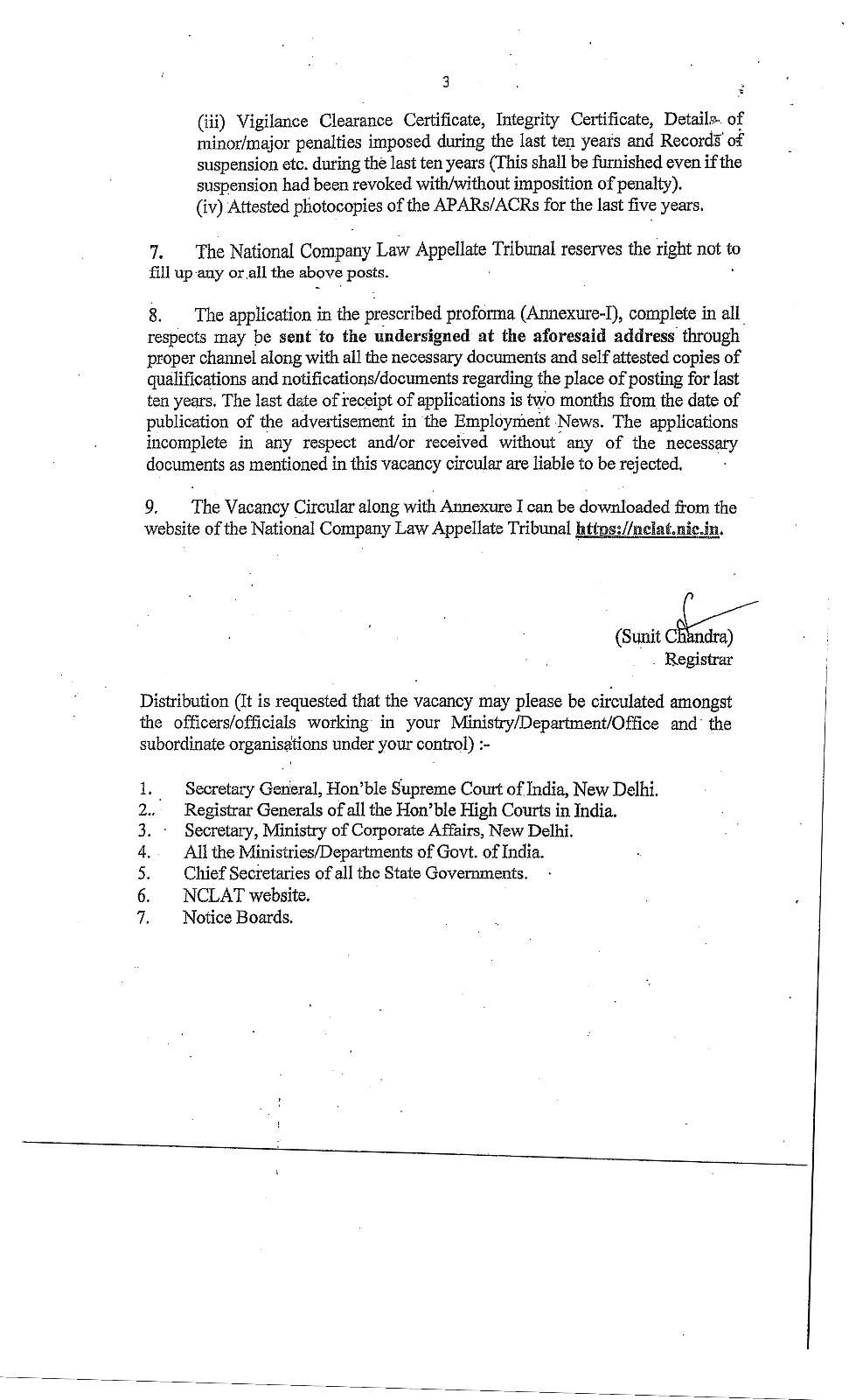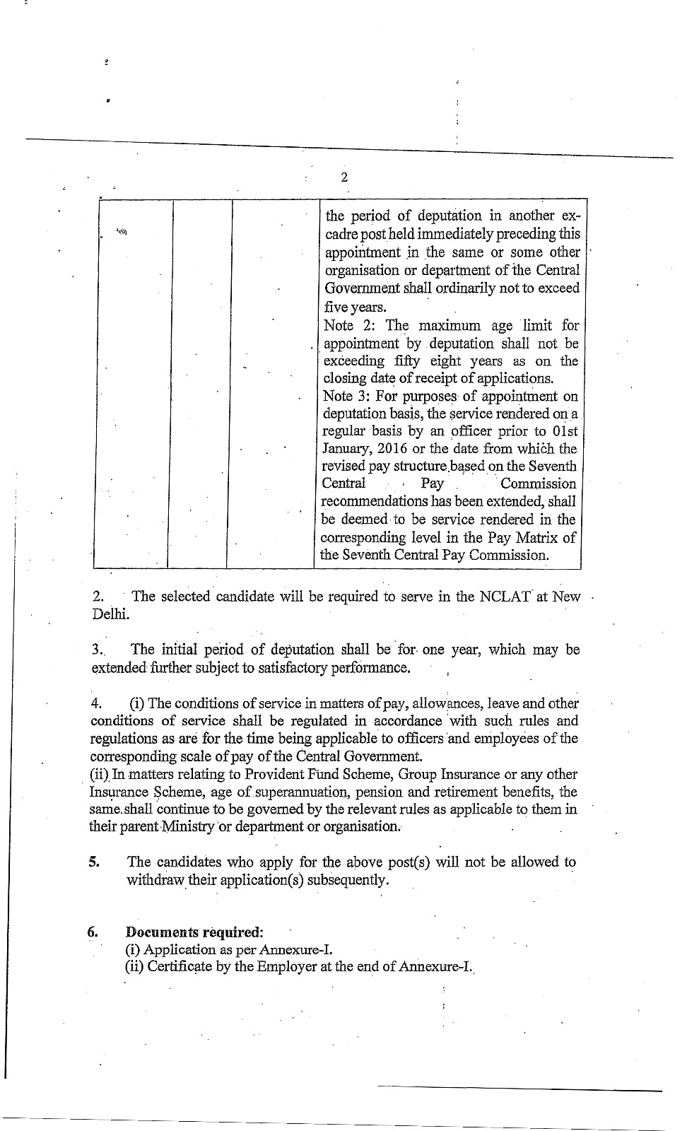 Filling up of one post of Registrar in the National Company Law Appellate Tribunal on deputation basis.
