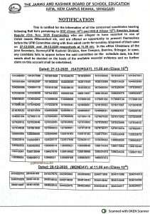 The Jammu and Kashmir Board of School Education (JKBOSE) has issued an official notification for candidates of Class 10th (SSE) and Class 12th (HSE-II) who are alleged to have used unfair means or committed misconduct during the Annual Regular Examination held in Octoberโ€“November 2025.