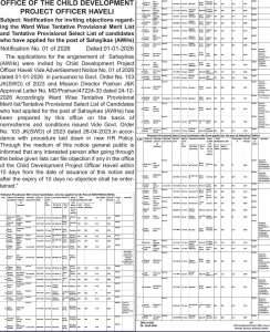 Objections Invited for Tentative Merit & Select List of Sahayikas (AWHs)