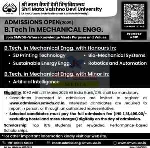 Candidates interested in admission are invited to register at www.admission.smvdu.ac.in.
