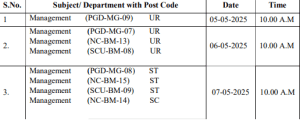 The interview schedule for other subjects will follow and will be uploaded on the University website only. Accordingly, the candidates are informed to regularly check the University website i.e www.kashmiruniversity.net for future updates.