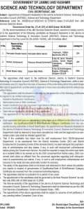 Appointment of Research Assistants In the Jammu & Kashmir Science Technology & Innovation Council (JKST&IC), Science and Technology Department.