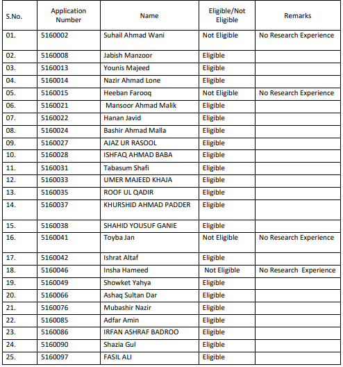 • Not Eligible candidates may submit documents if any in support of Research Experience by or before 10-01-2026, via email at [email protected]
