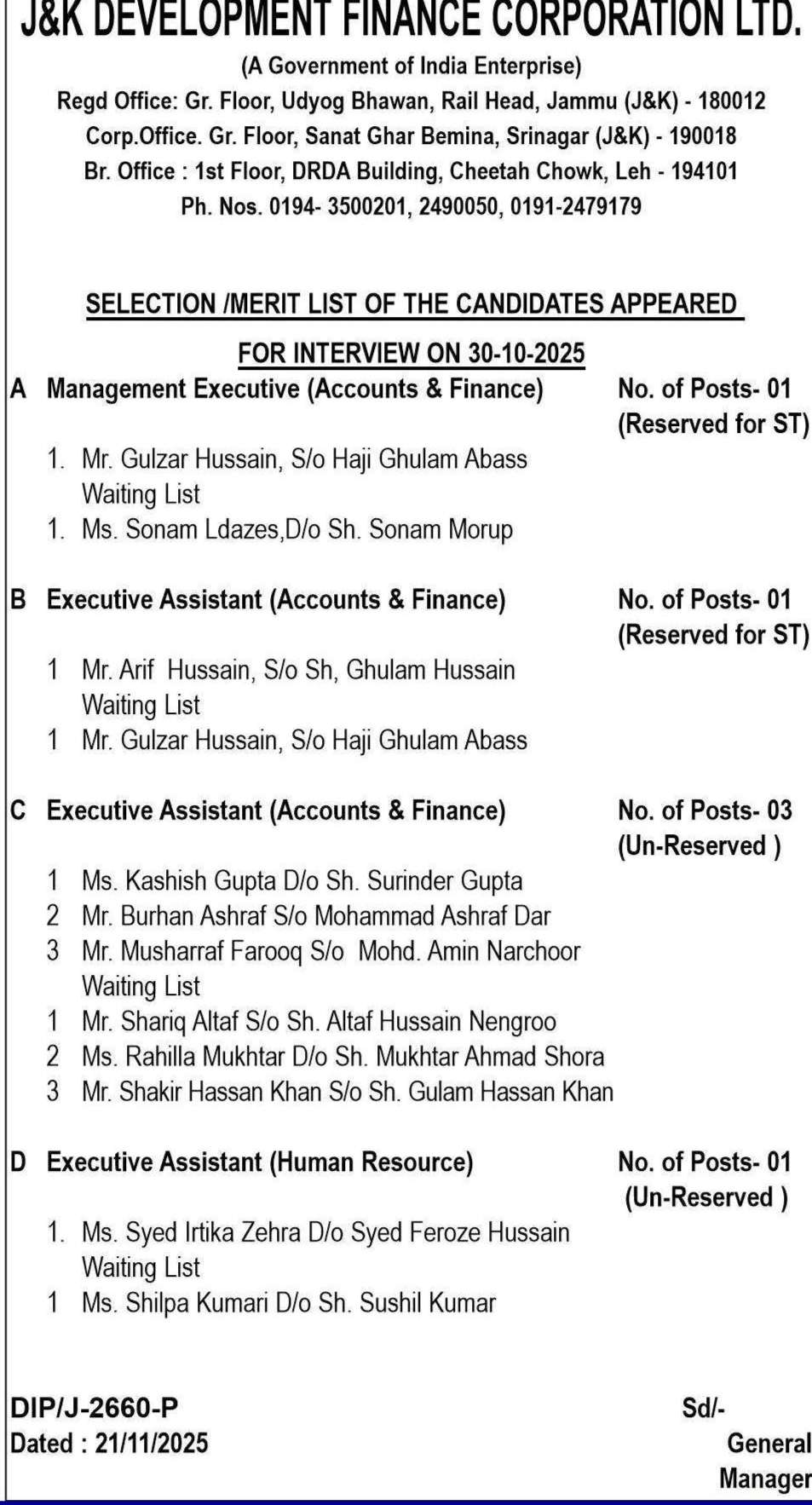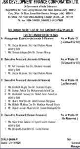 J&K Development Finance Corporation LTD Selection List