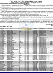 Whereas, the updated seniority list of Junior Assistants, District Jammu as on 01-11-2024 were circulated/forwarded to all the concerned Principals Govt. HSS/ZEOs/Headmasters Govt. HS (B/G) vide this office notification No: CEOJ/NG/NT/Seniority/16952-57, dated: 26-11-2024 through official email ([email protected]) and also uploaded on the official website of this office (ceojammu.in) for wide publicity & for inviting objections, if any, from the concerned officials who either is not included in the seniority list or having variation in their service particulars; and
