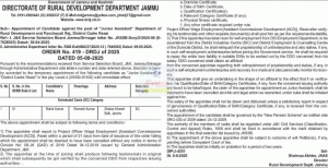 Appointment of Candidate against the post of “Junior Assistant” Department of Rural Development and Panchayati Raj, District Cadre Reasi