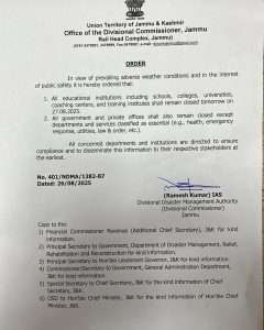 All educational institutions including schools, colleges, universities, coaching centers, and training institutes shall remain closed tomorrow on 27.08.2025.