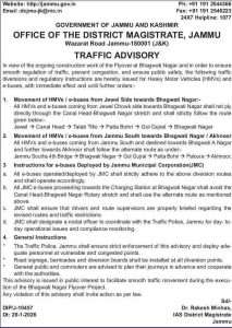 * The Traffic Police, Jammu shall ensure strict enforcement of this advisory and deploy adequate personnel at vulnerable and congested points.