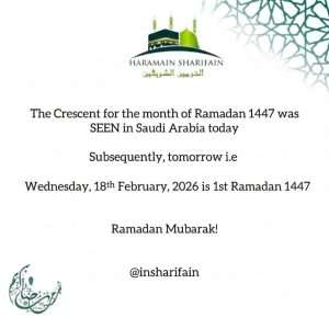 Subsequently, tomorrow i.e Wednesday, 18 February 2026 will be the first day of Ramadan 1447